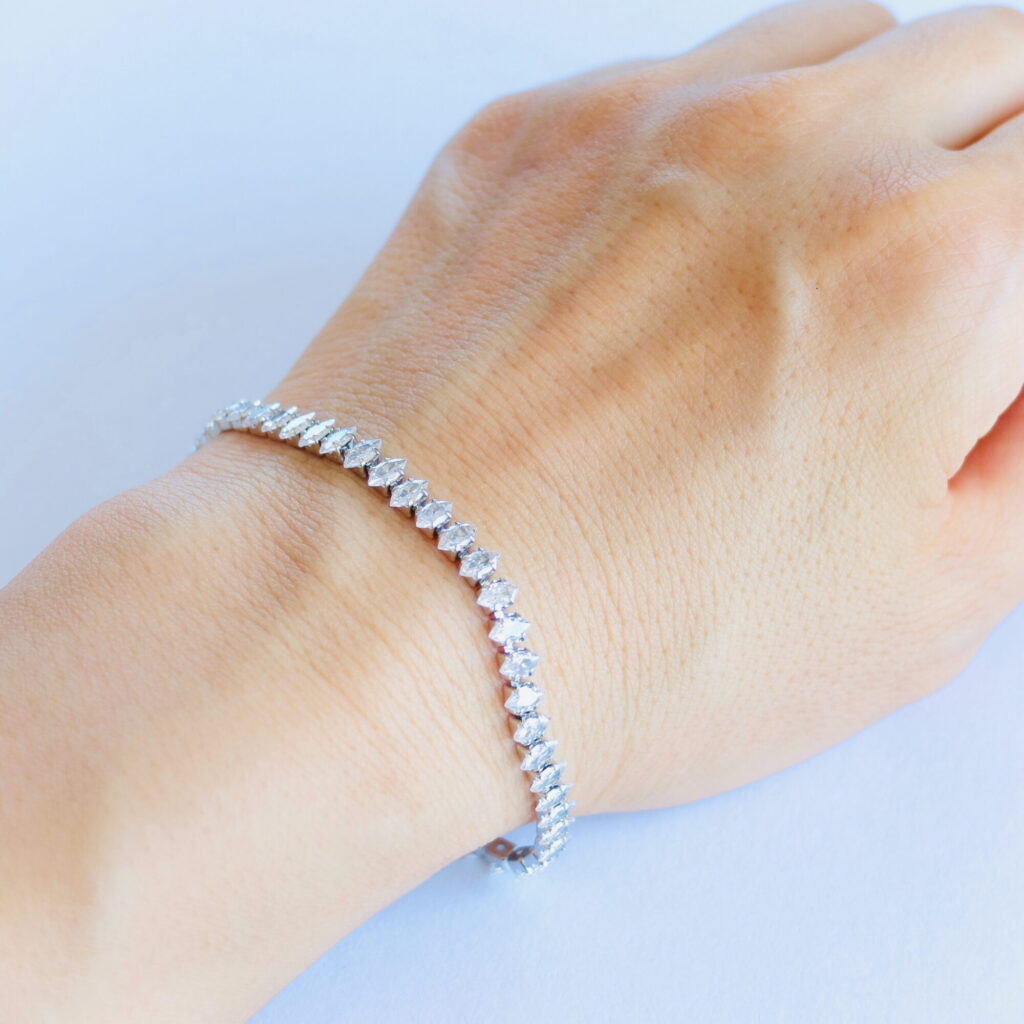 ガラスのストーンが入ったテニスブレスレット。